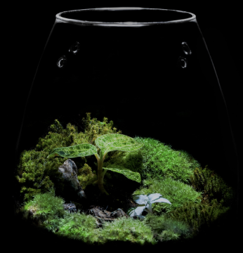 背丈のある苔であり、⼩さくしたヤシの⽊のようなイメージ。テラリウムに⽴体感を与える。